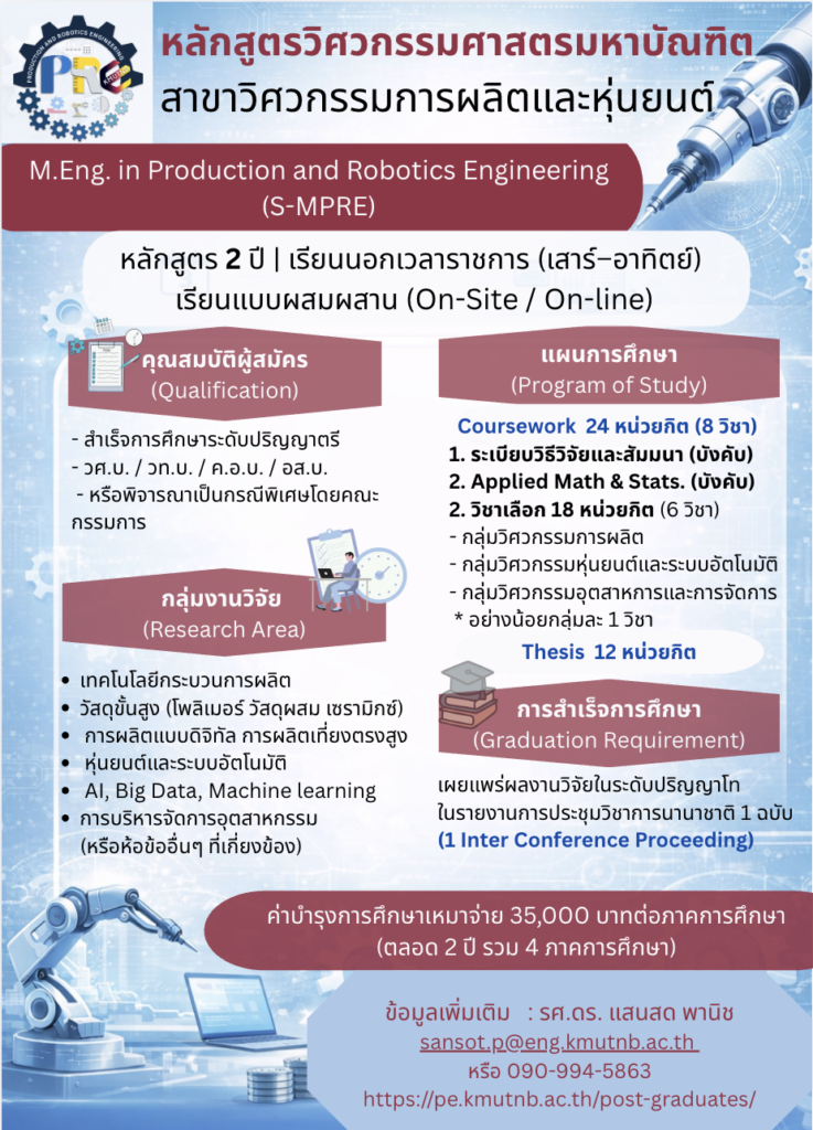 วิศวกรรมศาสตรมหาบัณฑิต (M.Eng in Production Engineering)