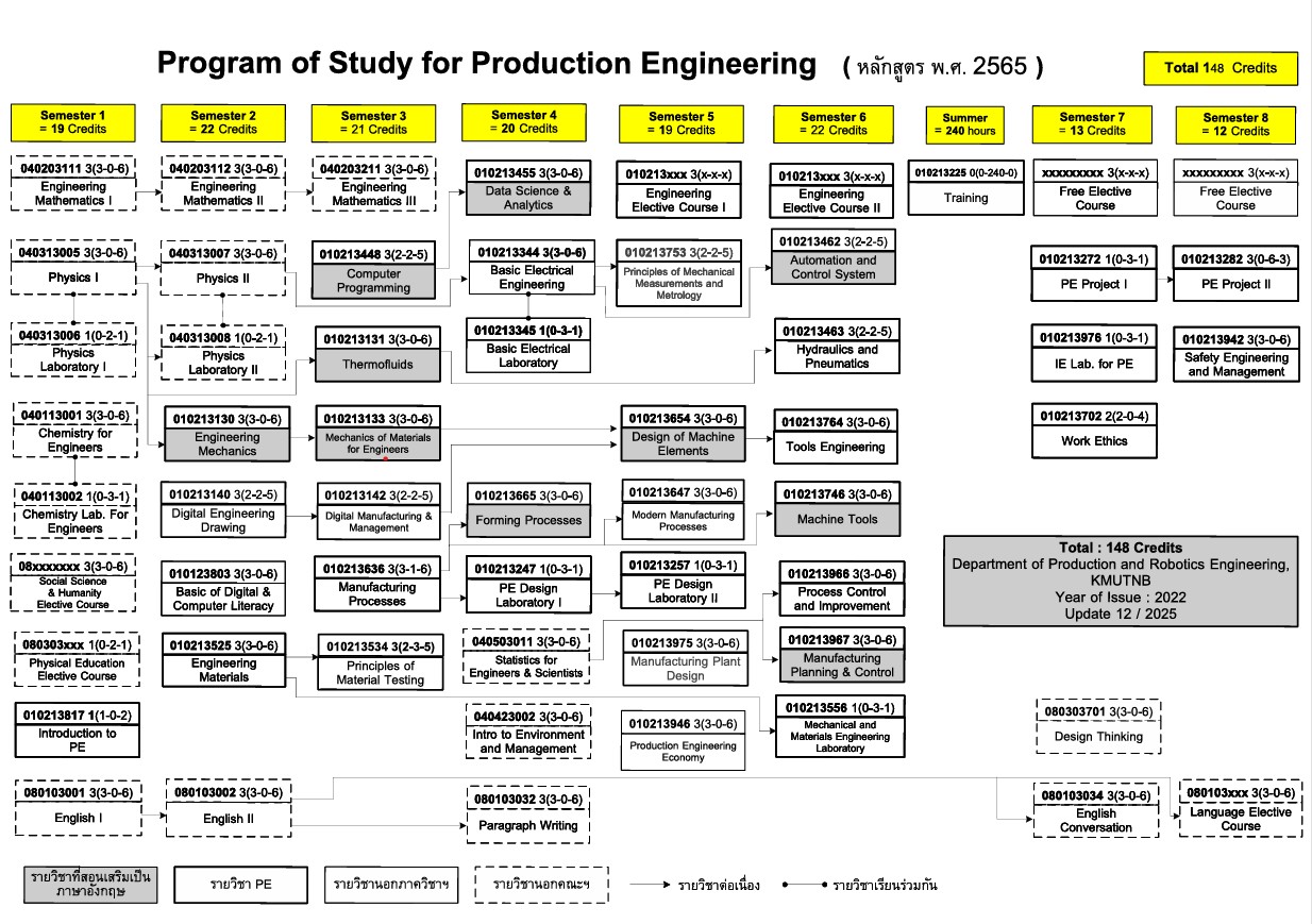 The Bachelor of Production Engineering program at King Mongkut’s University of Technology North Bangkok will prepare students for a broad range of professional careers in mechanic, automation, materials, and manufacturing. Guided by the Mission of the University the Production Engineering program is committed to preparing students to be thoughtful, responsible, and successful citizens as leaders and members of engineering and technical teams. The graduates within a few years of graduation